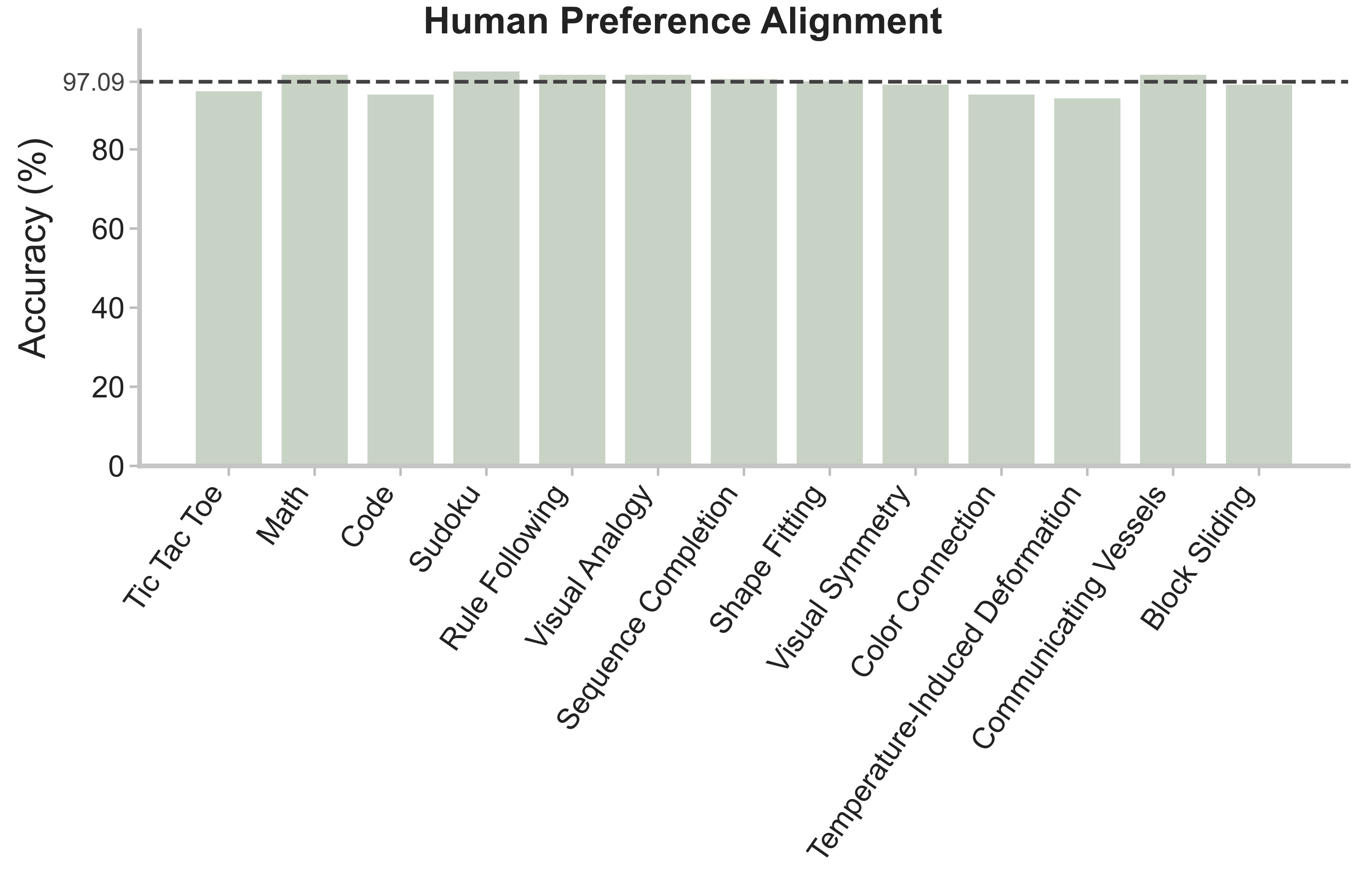 Human–alignment validation of our benchmark's scoring pipeline. Each point compares binary Pass/Unpass decisions from the automatic evaluation with human judgments across four reasoning categories.