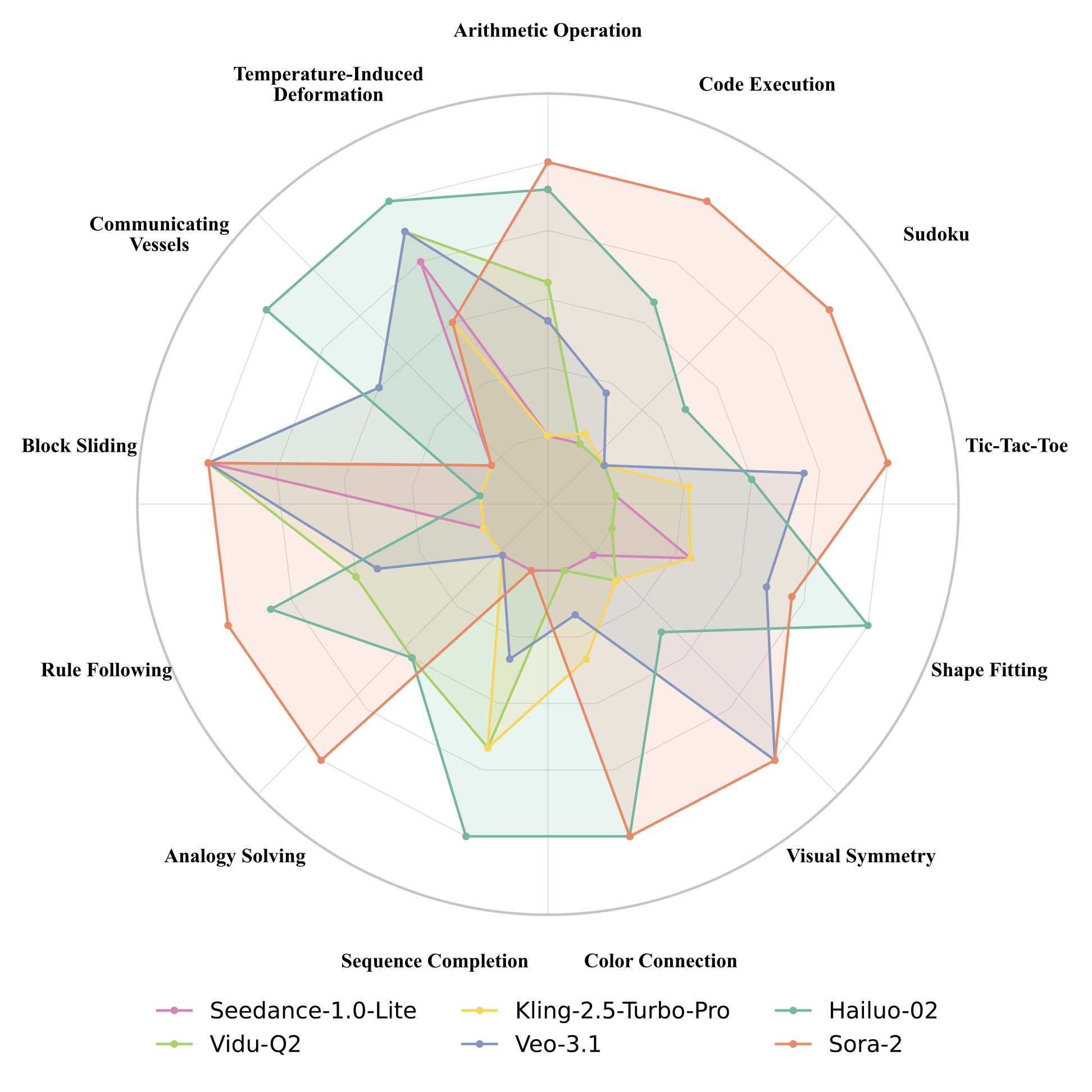 Example from the Seedance-1.0-Lite and Vidu-Q2 models on the Tic-Tac-Toe task. The model introduces additional decorative patterns across the mirrored axis, illustrating its tendency to enrich visual appearance rather than preserve original geometric form.